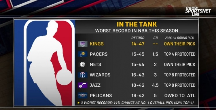 国王 14胜47负 握有自己的首轮签